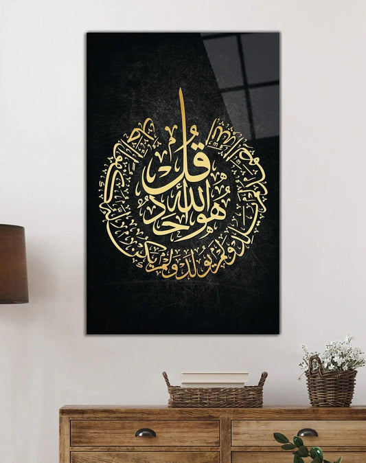 Surah al Ikhlas Arabic Calligraphy Tempered Glass Canvas