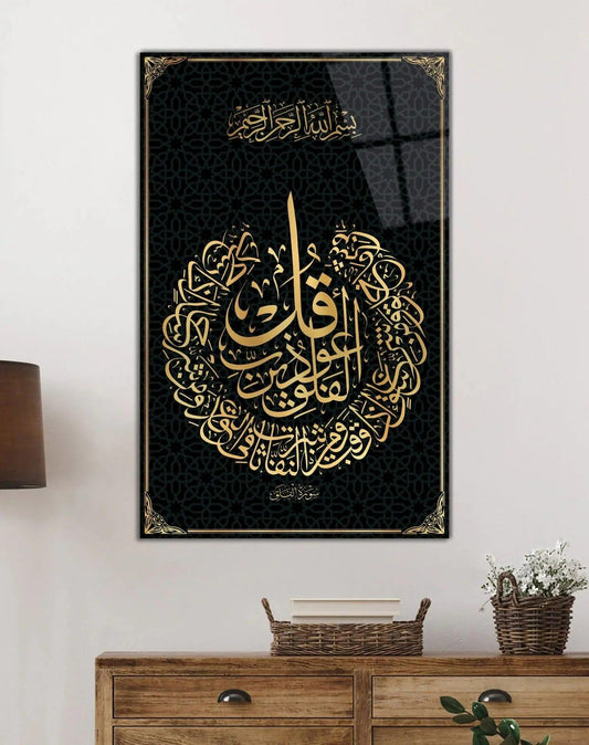 Surah Al-Falaq Calligraphy Arabic Glass Wall Art Muslim Decoration